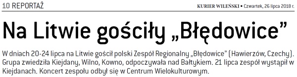 | Kurier Wileński napisał o wycieczce Błędowian | 26.7.2018 |