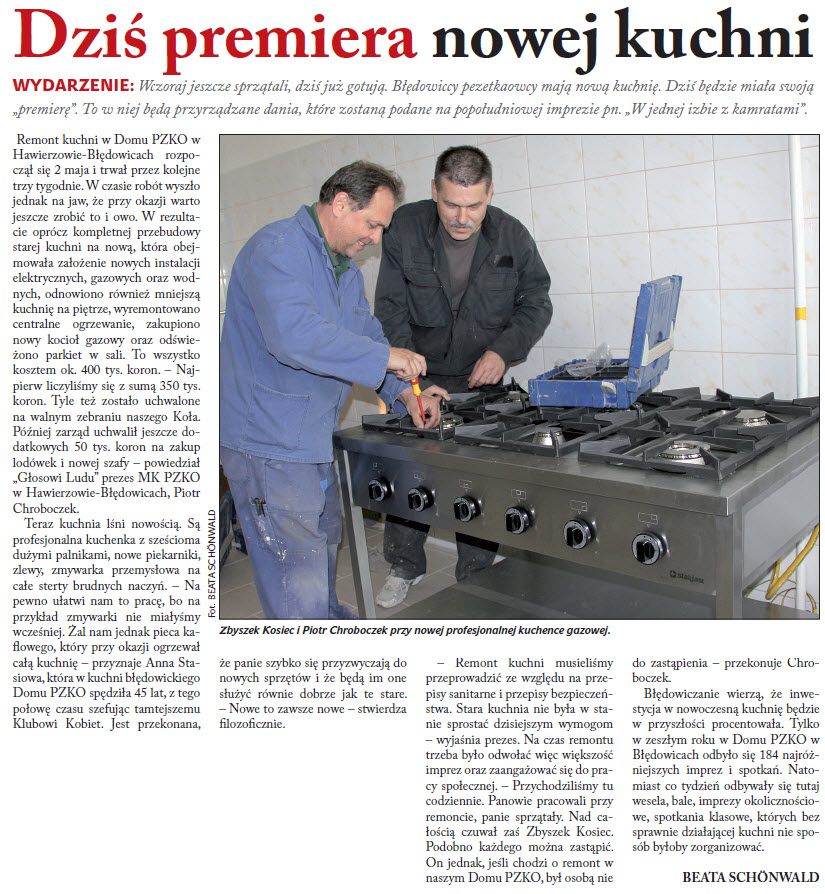 | Głos Ludu o rekonstrukcji kuchni | 25.5.2013 | Artykuł Głosu Ludu o rekonstrukcji kuchni w naszym Domu