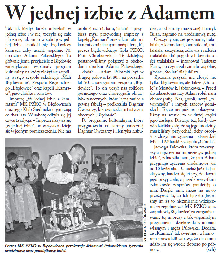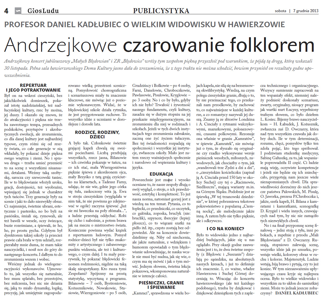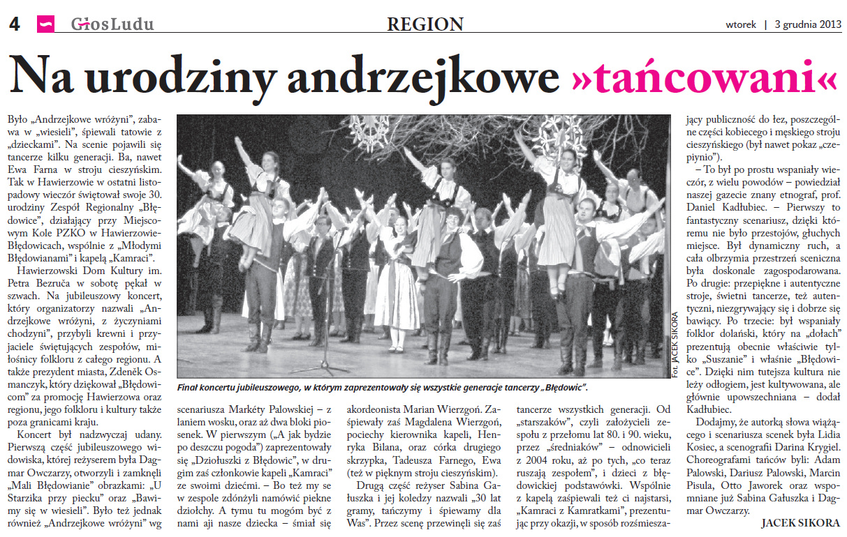 | Media o występie jubileuszowym ZR Błędowice | 2.12.2013 |